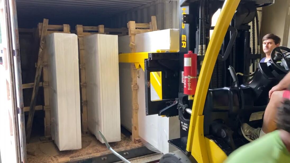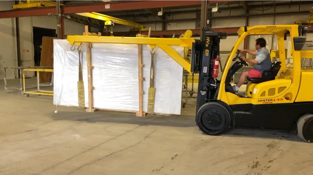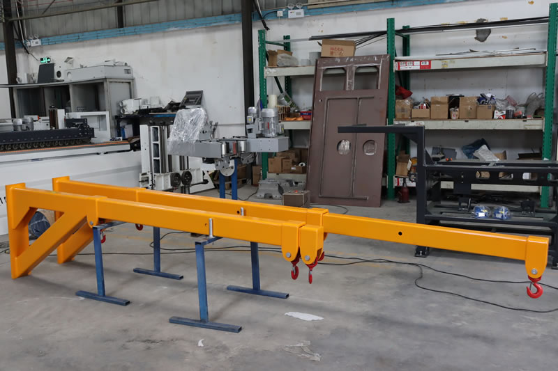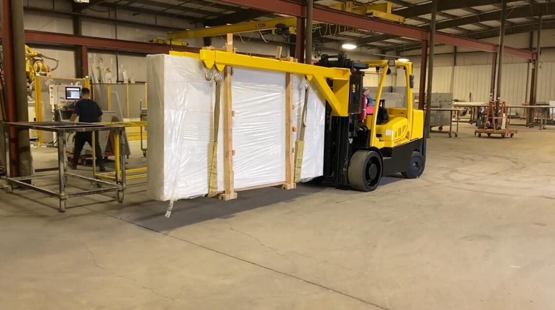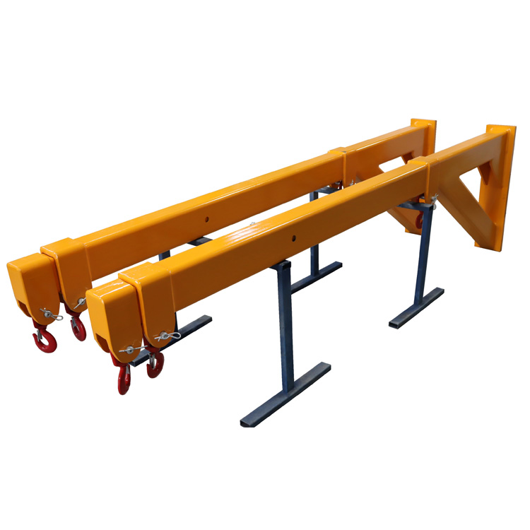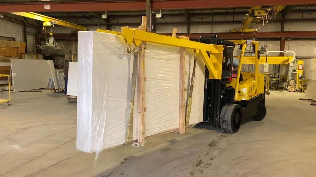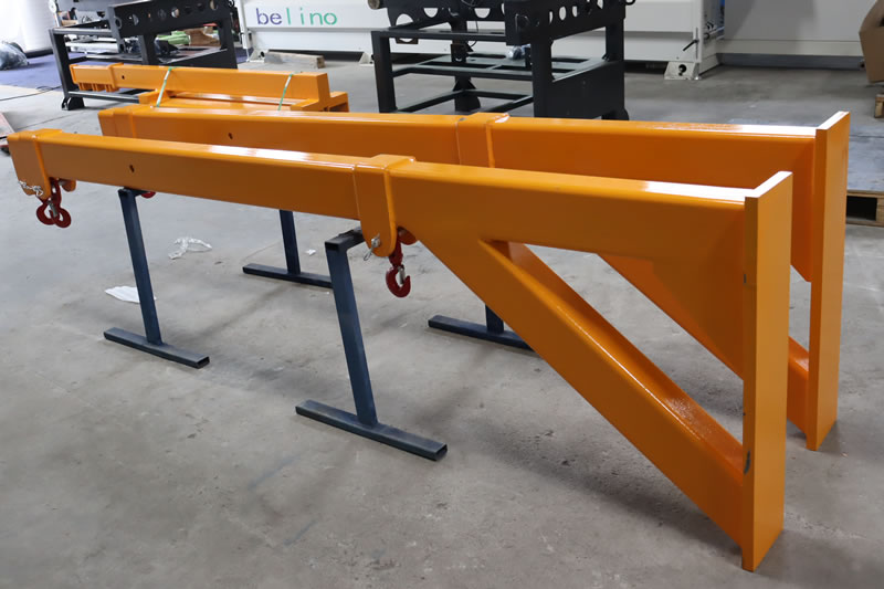 The Double Forklift Boom is a telescoping two section rectangular tube steel boom, designed for removing bundles of marble and granite slabs closed top containers.